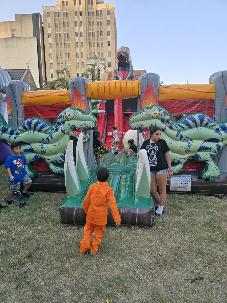 Get ready for a prehistoric party adventure with our Dinomite, the ultimate inflatable attraction! Perfectly designed for thrilling fun, this colossal dinosaur-themed bounce house is sure to be the highlight of any event. From birthday parties to community festivals, bounce house rentals Dinomite in Austin and surrounding areas promise a memorable experience for children and adults alike.