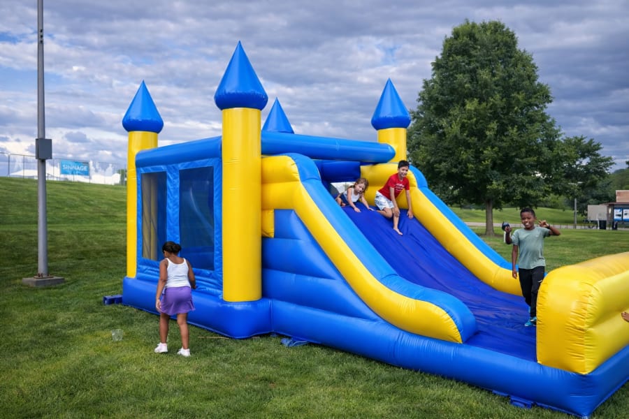 - Combination of a bounce house and slide for double the excitement